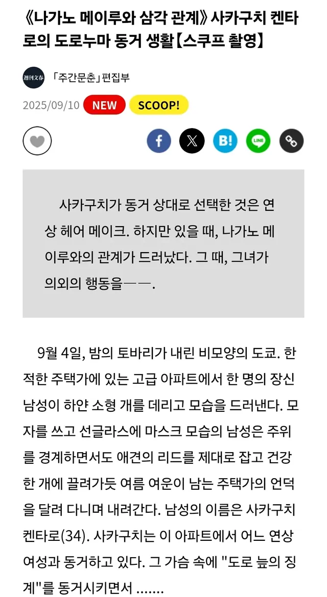 이번에 나가노 메이랑 사카구치 켄타로라는 배우 두명이 스캔들 터졌는데 좀 복잡함