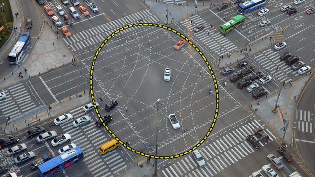 예를 들어, 초록불 신호를 받고 교차로에 진입했더라도 앞 차량이 밀려 빠져나가지 못하는 상황이라면 운전자는 반드시 교차로 입구에서 기다려야 한다. 빗금 사각형 구역 안에 진입해 정차하게 되면 직진이나 좌회전을 하려는 다른 차량들의 진로를 방해하고, 심하면 접촉사고로 이어질 수도 있다.
