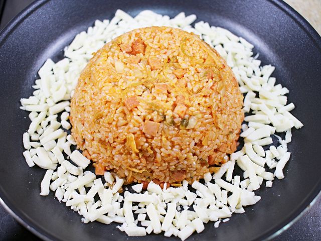 밥 가장자리에 치즈를 원 모양으로 둘러주고요.