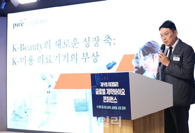 10일 오후 서울 중국 KG타워 하모니홀에서 ‘K-메디컬 에스테틱, 글로벌 시장 공략’이라는 주제로 열린 제9회 이데일리 글로벌 제약바이오 콘퍼런스에 발표자로 나선 홍준혁 삼일PWC 파트너는 ‘K-뷰티의 새로운 성장 축: K-미용 의료기기의 부상’을 주제로 발표를 진행했다.