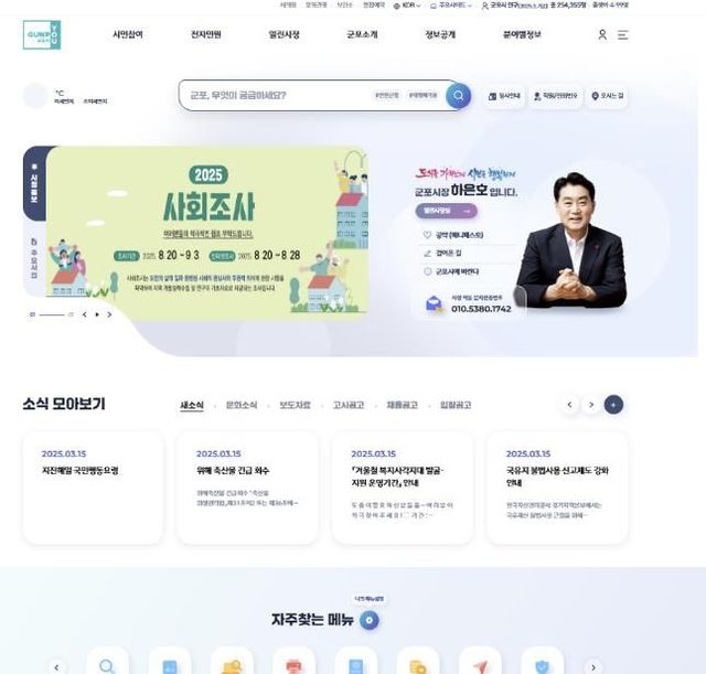 [와이뉴스] 군포시는 사용자 편의성 향상과 효율적인 정보 제공을 위해 시 홈페이지 메인 디자인을 개편했다고 발표했다.