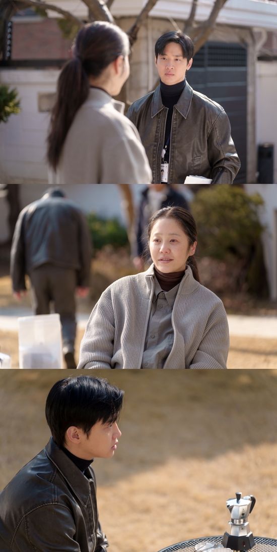 사진 속 정이신은 연금주택 정원에서 시간을 보내고 있다. 손에 책을 들고 있지만, 어딘가를 날카롭게 바라보는 정이신의 눈빛이 궁금증을 유발한다. 그런 정이신 앞에 나타난 차수열. 정이신의 말에 귀를 기울이는 차수열과, 어째서인지 설핏 미소를 보인 정이신의 모습이 눈길을 끈다. 23년 만에 재회한 순간 모자(母子)라는 것이 믿기지 않을 정도로 냉소적인 말을 주고받은 것과는 사뭇 다른 분위기이기 때문.
