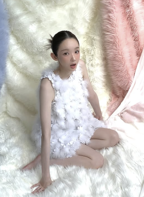 강민경은 10일 자신의 SNS에 직접 운영 중인 화장품 브랜드 광고 촬영 현장 비하인드 컷을 공개했다. 공개된 사진 속 강민경은 새하얀 퍼(fur) 질감의 배경 속에서 화이트 드레스를 입고 요정 같은 비주얼을 뽐내고 있다.