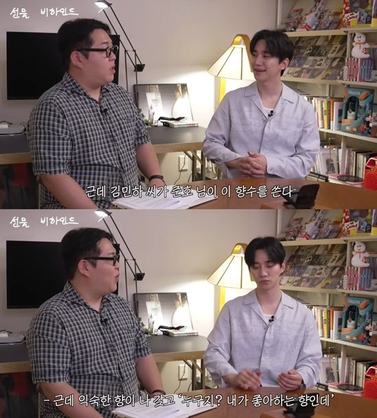 이준호는 "민하 배우랑 향이 겹쳤었다. 저도 그 향수 쓰시는 분을 못 봤다. 근데 촬영장에서 익숙한 향이 나 '이 향은 누구지? 내가 좋아하는 향인데'라는 생각을 했다"고 말하며 흔하지 않은 취향이 통한 김민하와의 일화를 언급했다.