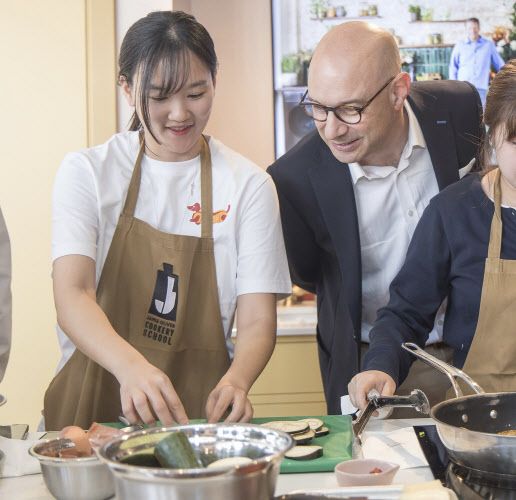 쿠킹 스튜디오에 들어가자 수강생들이 요리할 수 있는 주방 공간이 커다란 사각형 모양으로 구성돼 있었다. 각각의 공간에는 ‘듀얼 쿡 스마트 오븐’과 ‘듀얼 플렉스 인덕션’ 등 삼성전자의 프리미엄 주방 가전이 설치돼 있었다.