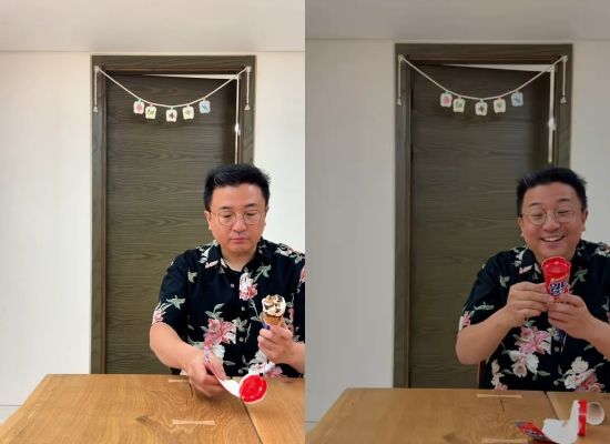 영상의 반전은 그다음이었다. 알고 보니 책상 밑에 새 아이스크림이 있었고, 문재완은 새 아이스크림을 혼자 다 먹겠다는 장난스러운 표정을 지어 웃음을 자아냈다. 콩트도 재밌게 담아내는 이지혜 문재완 가족의 화기애애한 분위기가 눈길을 끌었다.