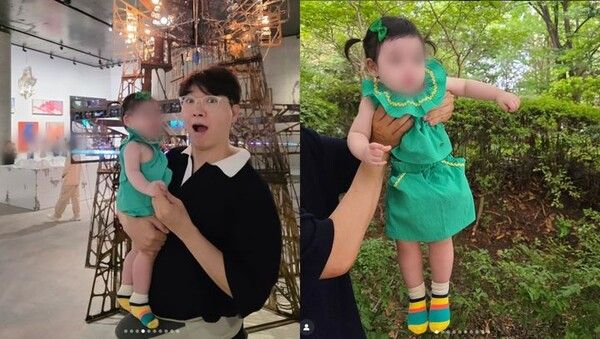 사진 속 재이 양은 초록색 원피스를 입고 귀여운 매력을 발산했다.
