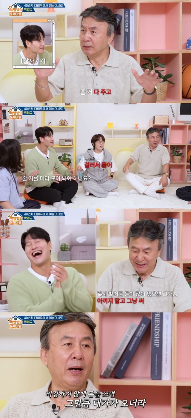 김종국은 "줄 걸 모아놔야 하냐"고 받아쳤다. 이에 박영규는 "혹시 벌어놓은 돈이 많이 있으면 그거 아끼지 말고 그냥 써라"고 이야기했다.