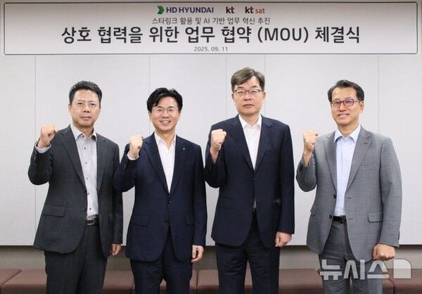 뉴시스 보도에 따르면, 이날 3사는 서울 강남구 KT 샛 본사에서 양해각서(MOU)를 체결했다. 이번 협약에 따라 향후 선박에 스타링크 위성 솔루션을 활용하는 등 HD현대 업무 전반의 디지털 AI 혁신에 적극 협력하고, KT의 AI 기술을 활용한 HD현대의 업무 혁신 과제를 공동 발굴하기로 했다.