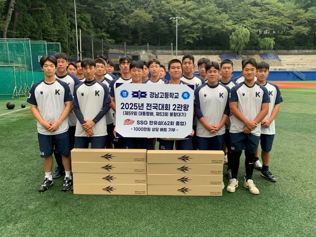 (엑스포츠뉴스 유준상 기자) SSG 랜더스 외야수 한유섬이 모교 경남고등학교 야구부의 전국대회 2관왕 달성을 축하하기 위해 1000만 원 상당의 배트를 기부했다.