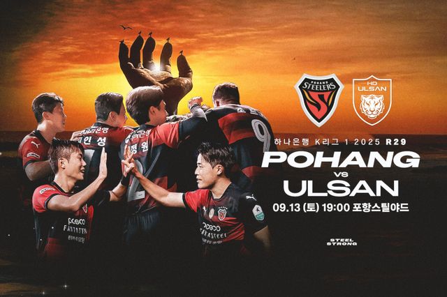 포항은 오는 13일 오후 7시 포항스틸야드에서 울산 HD와 하나은행 K리그1 2025 29라운드 홈경기를 펼친다. 이번 시즌 두 차례 맞붙은 동해안 더비에서 포항이 1승 1무로 우위를 점하고 있다. 포항스은 동해안 더비 무패를 위해 직전 경기의 아쉬움을 뒤로하고, A매치 휴식기 동안 팀 조직력을 다듬으며 동해안 더비 무패를 위한 담금질을 이어갔다. 구단에 따르면 K리그 최고의 라이벌전으로 손꼽히는 동해안 더비는 현재 예매가 빠르게 진행 중이며, 전 좌석 매진 초읽기에 들어갔다.
