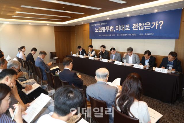 11일 오후 서울 중구 프레스센터 19층 목련실에서 일자리연대 주최로 열린 정책토론회 ‘노란봉투법, 이대로 괜찮은가?’에서 전문가와 경영단체 관계자들은 보완입법의 필요성을 한목소리로 강조했다.