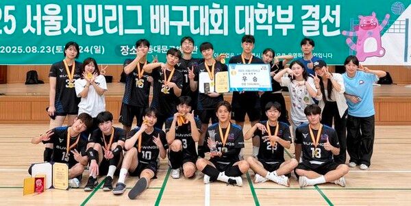 뉴시스 보도에 따르면, 삼육대 '수윙스'는 지난달 24일 서울 동대문구체육관에서 열린 '2025 서울시민리그 배구대회' 남자부 결승에서 서강대 스파이크G(SpikeG)를 세트 스코어 2대 0(25-23, 21-14)으로 제압하고 우승컵을 들어 올렸다.