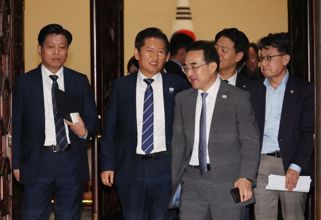 유 수석부대표는 민주당 내에서 3특검법 합의를 두고 정 대표와 김 원내대표 간 입장차이가 벌어진 데 대해선 "원내대표 합의를 지킬 수 없다면 민주당에서는 정 대표의 승낙이 있어야 정부와 원내지도부 간 합의가 이행되는 것이냐"며 "민주당에서는 정 대표만이 대장 역할을 하는 것이냐. 민주당에 정청래만 있는 것이냐"고 꼬집었다.