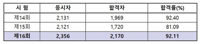 [와이뉴스] 법무부는 지난 8월 2일 제16회 법조윤리시험을 실시한 결과, 응시자 2,356명 중 2,170명이 합격했고, 합격률은 92.11%로 작년 합격률(81.09%) 보다 11.02%p 상승했고 재작년 합격률(92.40%)과는 비슷했다.