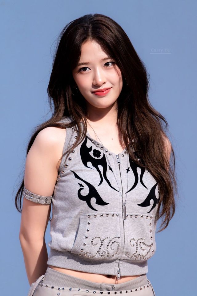 시크한 오프숄더와 클래식 스트라이프의 만남, 프로미스나인 송하영의 팬 사인회 룩
