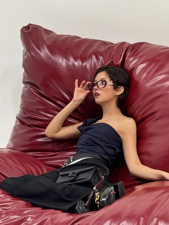 시크한 오프숄더와 클래식 스트라이프의 만남, 프로미스나인 송하영의 팬 사인회 룩
