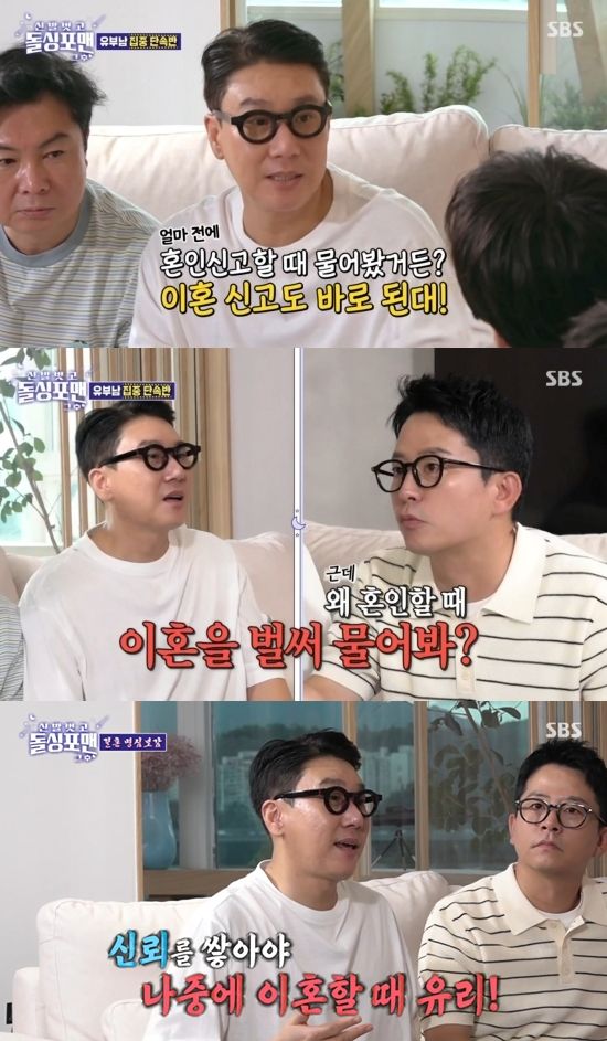 그러면서 김준호는 "왜 내가 이혼을 하냐?"라며 발끈하자, 이상민은 프로그램 제목에 '돌싱'이 들어가는 것을 언급하며 "프로그램이 돌아가야 하잖아"라고 언급했다.