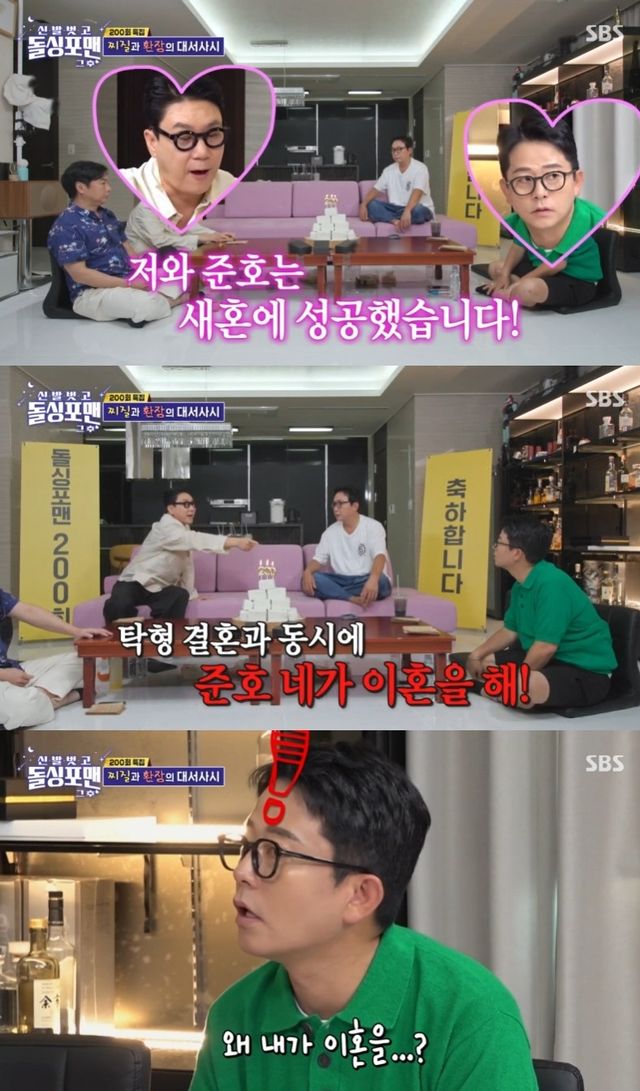 김준호는 이상민에게 "형이 먼저 결혼했으니까, 형이 먼저 이혼 해라"라며 이상민을 공격하자, 탁재훈은 "프로그램을 위해서 (이혼)해주세요"라고 부추겼다. 이상민도 "파급력은 네가 세"라며 김준호를 몰아갔다. 탁재훈 또한 "프로그램 하려면 도와가면서 해야한다"며 이혼의 필요성을 이야기했다.