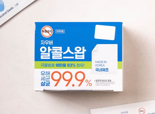 다이소에서 판매하는 '자우버 알콜 스왑'은 충남 계룡시 소재 주식회사 자우버에서 제조한 국내산 제품이다. 100매가 개별 포장되어 있으며 곡물 발효 에탄올 83%가 함유된 소독용 솜이다.