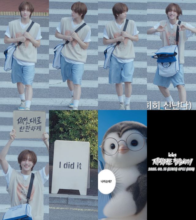 경쾌한 발걸음, 꾸밈없는 사복 패션, 건널목 한복판에서 펼친 혼자만의 댄스 타임, 크로스백에서 꺼낸 ‘제멋대로 찬란하게’ 홍보 피켓, 도로변에 세워져 있는 ‘I did it.’ 입간판, 말풍선 ‘나이슨데?’를 띄운 펭귄 캐릭터 등 어느 것 하나 예상대로 흐르는 장면이 아닌 ‘갑툭튀‘의 향연으로 시선을 끌며 은은한 미소를 유발한다.
