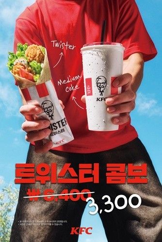 '트위스터 콤보'는 트위스터와 콜라 M으로 구성되며, 정가 대비 약 48% 저렴한 3300원에 판매된다.
