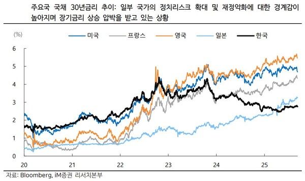 프랑스의 경우도 국채 30년물 금리가 9월 2일 4.49%로 급등했는데, 여기에 더해 재정삭감을 지지했던 바이루 총리에 대한 불신임이 결정되는 등 정치적 불확실성도 증폭되고 있다.