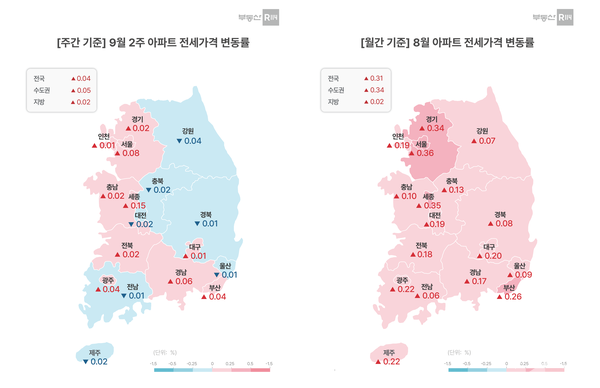 [직썰 / 최소라 기자] 9월 둘째 주(9.8~9.11) 서울 아파트값이 0.24% 오르고 수도권은 0.18% 상승하며 전국 아파트 매매가격은 전주 대비 0.16% 올랐다. 전세시장도 세종과 서울을 중심으로 동반 상승세를 이어가며 약세 전환 가능성을 차단했다.