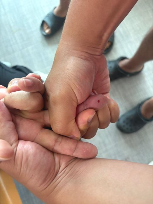 눈길을 끄는 것은 함께 첨부한 직원의 상처 사진이었는데, 마치 혈당 체크 중인 상황을 연상시키는 손가락에서 피가 나와 맺혀 있는 모습이 담겼다는 점이다.