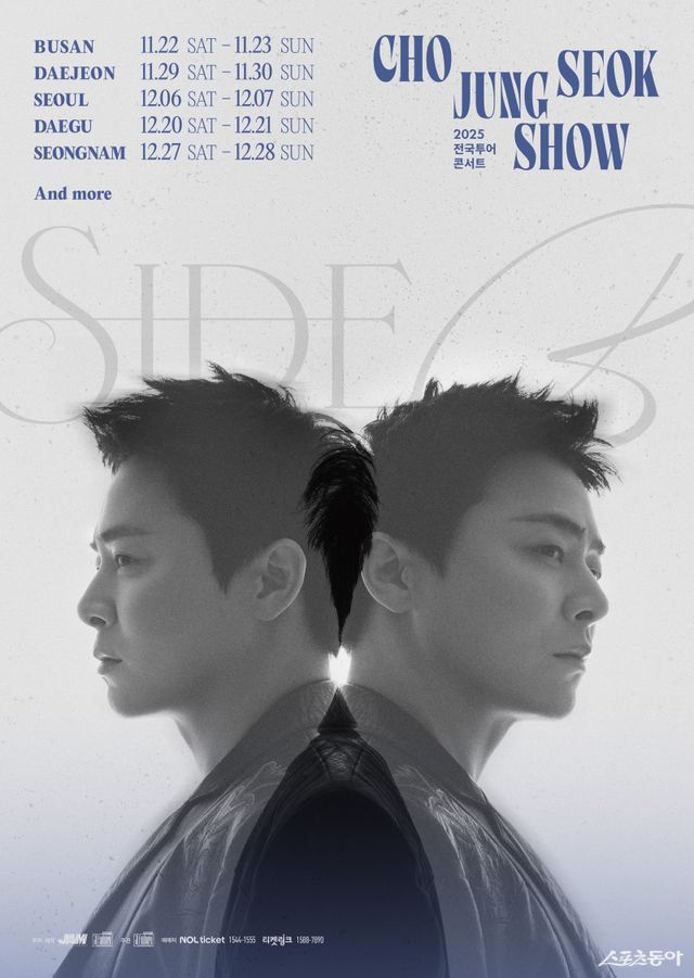 조정석의 첫 번째 전국투어 ‘조정석 쇼: 사이드 비’는 11월 22~23일, 11월 29~30일 대전, 12월 6~7일 서울, 12월 20~21일 대구, 12월 27일~28일 성남 등 일정을 확정, 5개 도시에서 총 10회 공연으로 펼쳐질 예정이다.
