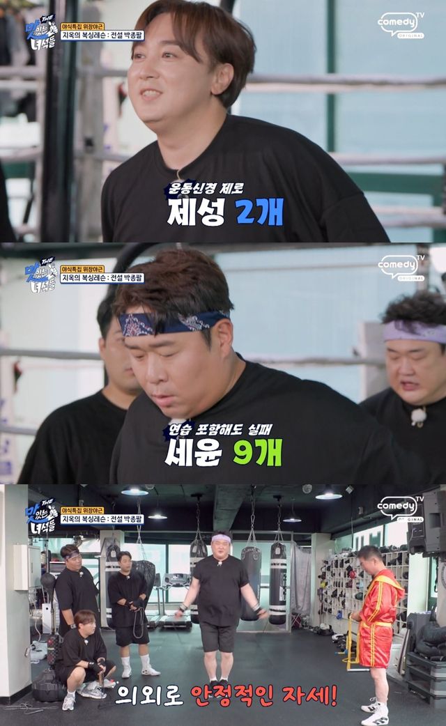 박종팔은 복싱의 기본은 줄넘기라고 말하며 멤버들에게 줄넘기 테스트를 시킨다.