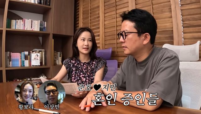 또한 김지민은 혼인신고를 위해 전날 '조선의 사랑꾼'에 함께 출연하는 배우 황보라, '미운 우리 새끼'와 '신발 벗고 돌싱포맨'에 함께 출연 중인 이상민을 증인으로 사인을 받았다고 알렸다.