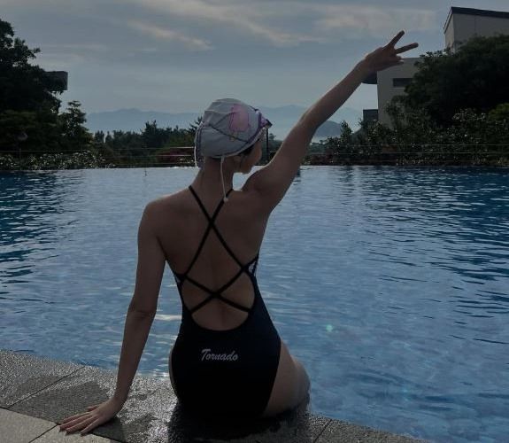 공개된 사진 속 김다영은 수영장에서 즐거운 시간을 보내는 모습이다. 검정색과 화려한 색감의 수영복을 완벽하게 소화하며 군살 없는 늘씬한 몸매와 탄탄한 뒤태를 뽐내 시선을 사로잡았다.