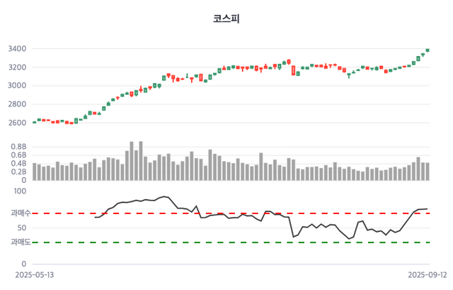 금일 코스피는 나흘째 신고가를 계속해서 갱신하며 가파른 상승을 보이며 마감했다. 특히 외인들의 순매수가 대거 유입되면서 상승폭을 키웠다. 현재 3400을 목전에 두고 마감했다. 코스닥 또한 계속해서 52주 최고가를 갱신하면서 가파르게 상승하며 마감했다. 차주 미국의 금리 방향성에 따라 국내 증시 또한 방향성이 더욱 확고해질 것으로 보인다.