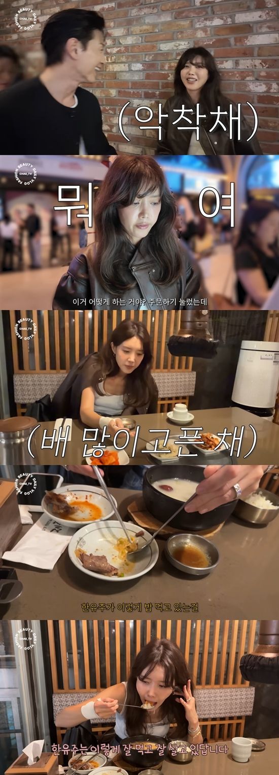 채정안은 개의치않고 곰탕에 깍두기까지 풀며 식사를 마쳤다.