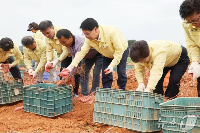 고구마 수확 현장 방문한 심덕섭 고창군수 / 뉴스1, 고창군 제공