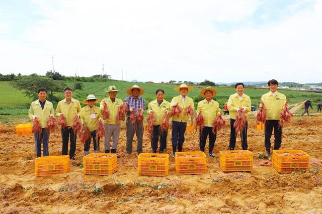 뉴스1에 따르면 심덕섭 고창군수는 최근 공음면 건동리 일원 1만6528㎡(약 500평) 규모의 고구마 수확 현장을 직접 찾아 농가를 격려하고 애로사항을 청취했다. 이날 현장에는 조민규 고창군의회 의장과 농업 관계 공무원 등 30여 명이 함께해 고창 고구마의 위상을 확인했다.