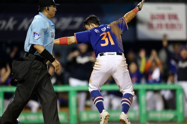 베테랑 황재균은 일명 '수영(스위밍) 슬라이딩'으로 박동원의 태그를 피해 반대편 팔로 베이스를 터치했다. 염 감독은 "나도 경험을 해봤지만 그런 플레이에 대응하기 쉽지 않다"라며 "그런 슬라이딩이 새로운 트레이드가 됐다. 수비수가 신경을 많이 써야 한다"라고 말했다.