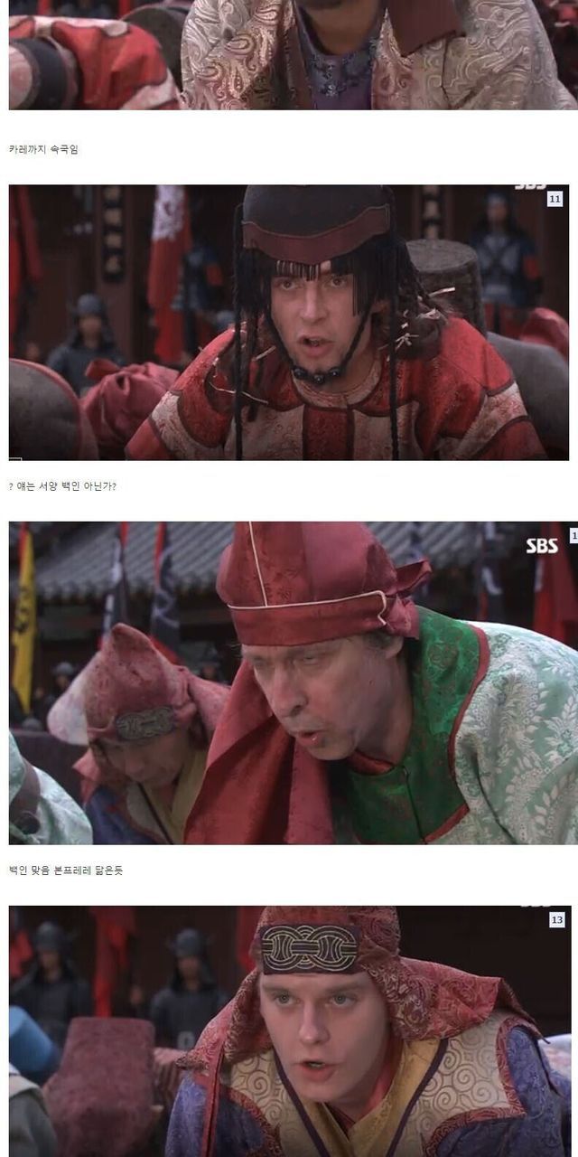 물론 실제로 고구려가 점령한 종족인 황두실위는 머리가 노랗고 눈이 파랗다라는 기록이 있음