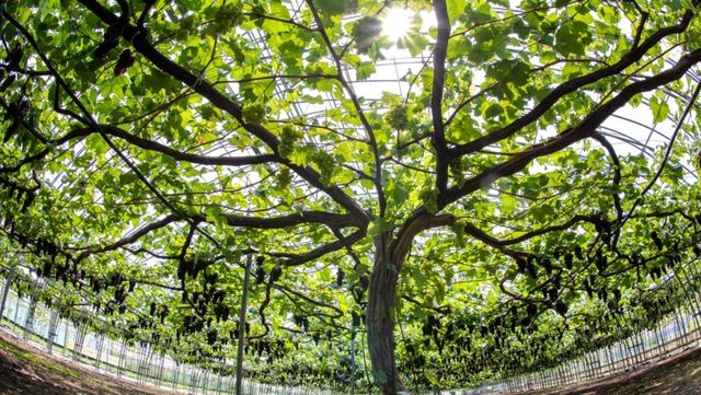 경북 성주에 있는 로열바인 포도 농장. 수확을 앞둔 포도송이가 매달려 있다. / 신세계 백화점