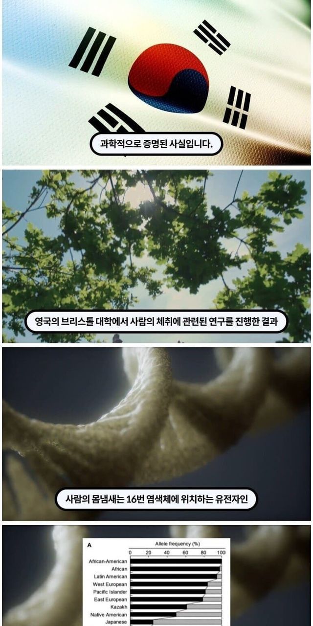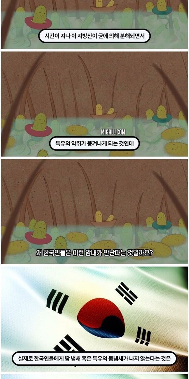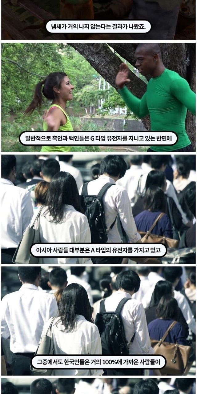 = 대체로 미국 흑인이 가장 암내가 심하고, 한국인이 가장 덜하다