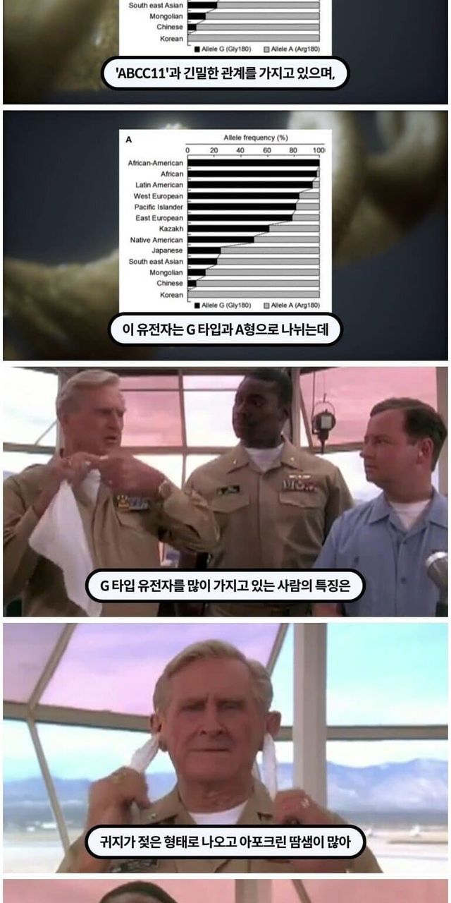 검은색 비중(ABCC11유전자 G대립 유전자)이 큼