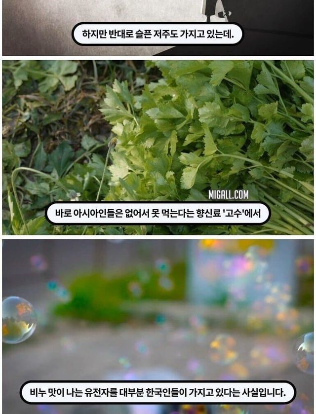 고수의 향을 맡을 경우, 고수에 포함된 알데하이드 성분을 민감하게 감지하여 비누나 세제와 같은 역한 냄새로 느끼게 된다고 한다.