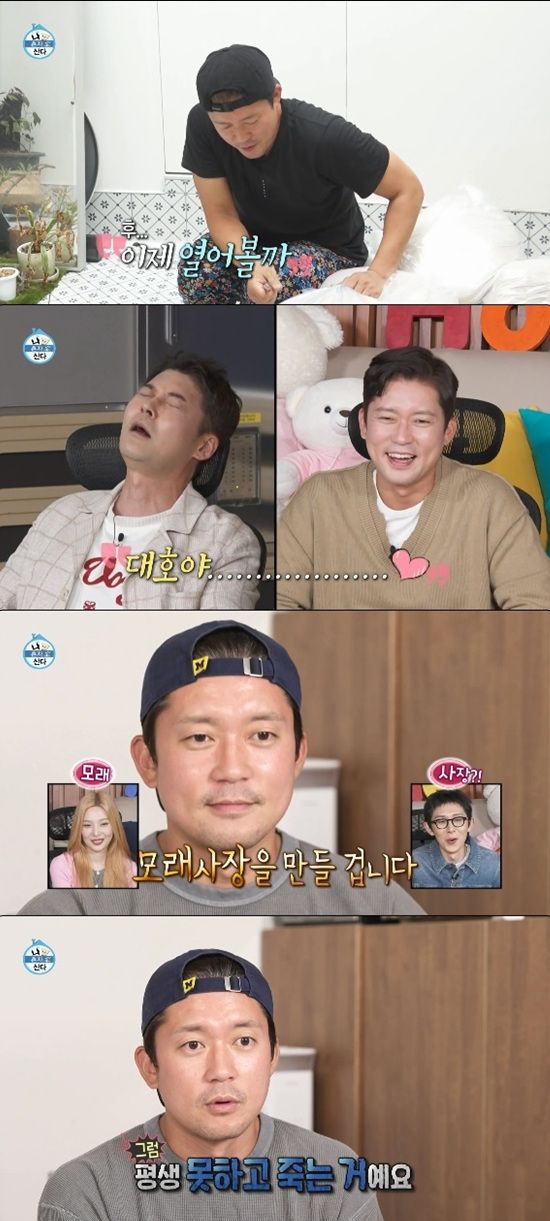 김대호는 "모래 어떻게 치우지? 그러면 아무 것도 못한다. 그냥 하는 거다. 하고 싶은 일을 할 때 다가오지 않은 일을 두고 평생 못하고 죽는 거다"라고 강조했다.