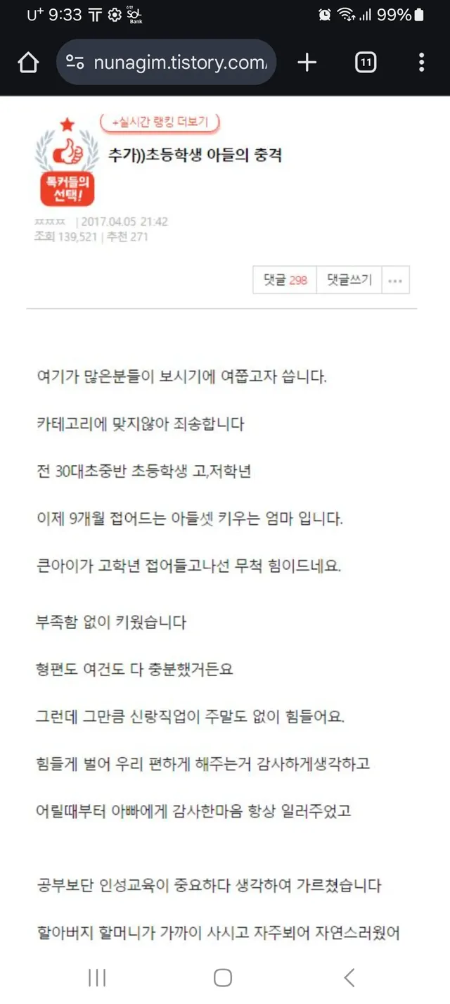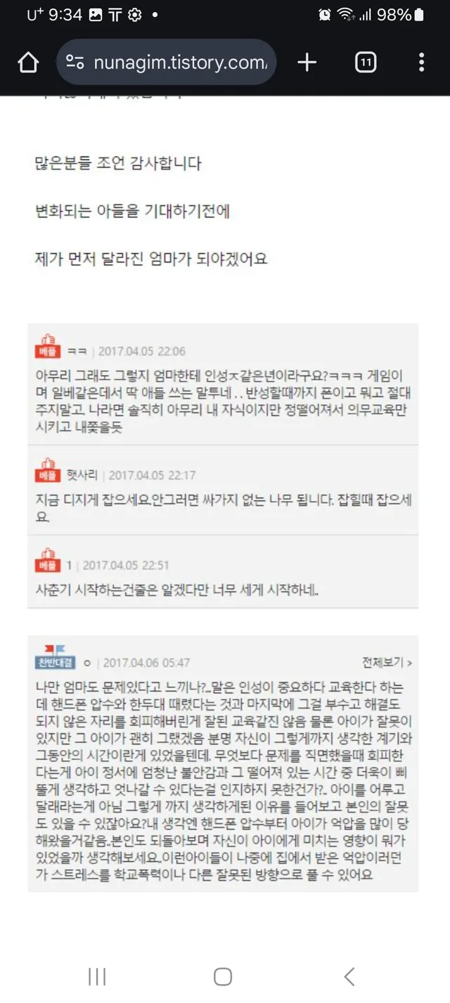그래도 베댓같이 금쪽이 부모같은 부모미달까진 아니고 자신이 부족한걸 인지하고 고치려하는게 다행