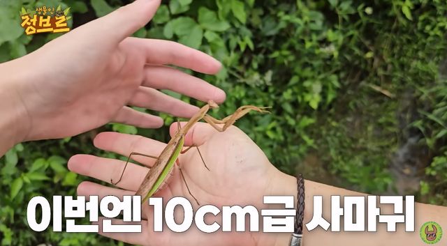 10cm 길이의 왕사마귀 / 유튜브 '정브르'