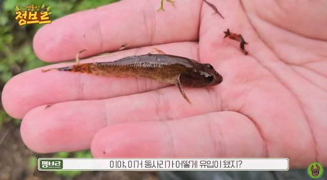 그런데 뜰채질을 하던 중 작은 민물고기 한 마리가 잡혔다. 이를 본 정브르는 "어? 이거 뭐지? 이야 이거 어떻게 유입이 됐지? 진짜 신기하다. 생각지도 못한 게 나왔다"라고 말했다.