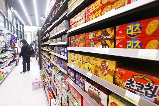 한 편의점 매대에 있는 여러 과자 모습. 기사 이해를 돕기 위한 자료 사진입니다. 해당 기사와 직접적인 관련은 없습니다. 농심 '비29' 과자를 좋아하는 분들이 환영할 반가운 소식이 전해졌습니다. / 연합뉴스