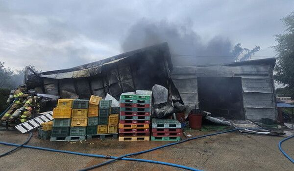 뉴시스 보도에 따르면, 경량철골조 샌드위치판넬 구조 126㎡ 규모의 창고는 수확 후 사과를 보관 중이었다.