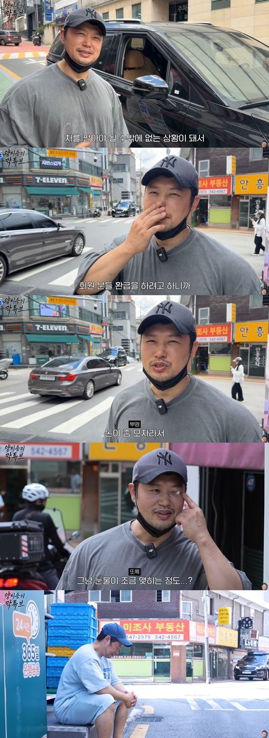 이날 양치승은 "차를 팔았다. 차를 팔아야 될 수밖에 없는 상황이 됐다. 체육관 (폐업까지) 얼마 남지 않아서 회원분들 환급을 하려고 하니까 돈이 좀 모자랐다. 차를 팔아야 될 것 같았다"라며 구매자에게 차를 넘기는 현장을 공개했다.